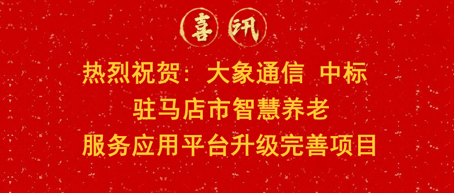 中標喜訊 | 熱烈祝賀大象通信中標駐馬店市智慧養(yǎng)老服務應用平臺升級完善項目