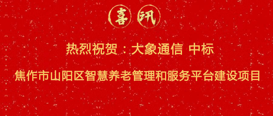 中標喜訊 | 熱烈祝賀:大象通信中標焦作市山陽區(qū)智慧養(yǎng)老管理和服務平臺建設項目